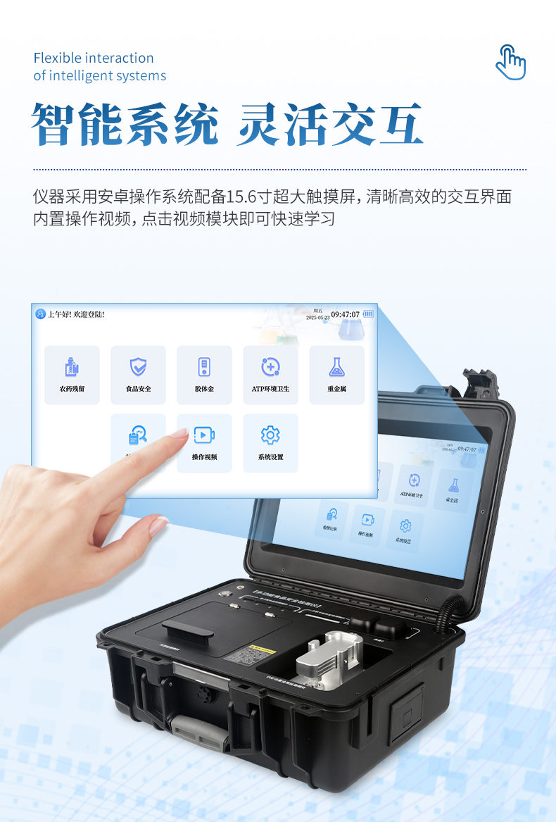 本儀器操作簡(jiǎn)便、體積小、集成多種檢測方法,可快速檢測200多項目,包含非食用化學(xué)物質(zhì)、濫用食品添加劑、農藥殘留、獸藥殘留、微量元素、重金屬、細菌微生物、病害肉、營(yíng)養強化劑、抗生素類(lèi)殘留、激素類(lèi)殘留、真菌毒素類(lèi)殘留、化學(xué)類(lèi)殘留、等現場(chǎng)的定性定量檢測。