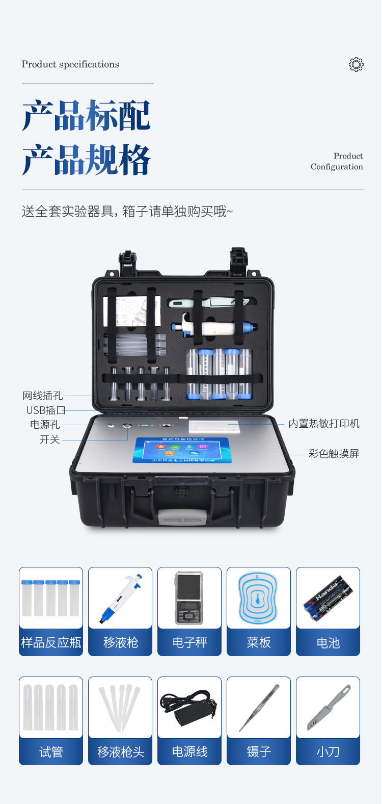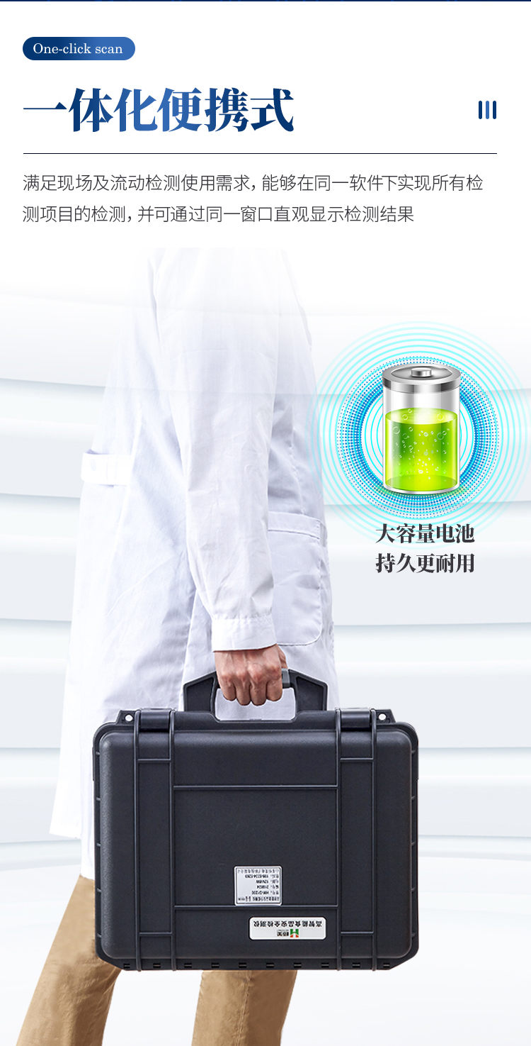 6、一體化便攜式快檢設備,滿(mǎn)足現場(chǎng)及流動(dòng)檢測使用需求,能夠在同一軟件下實(shí)現所有檢測項目的檢測,并可通過(guò)同一窗口直觀(guān)顯示檢測結果。